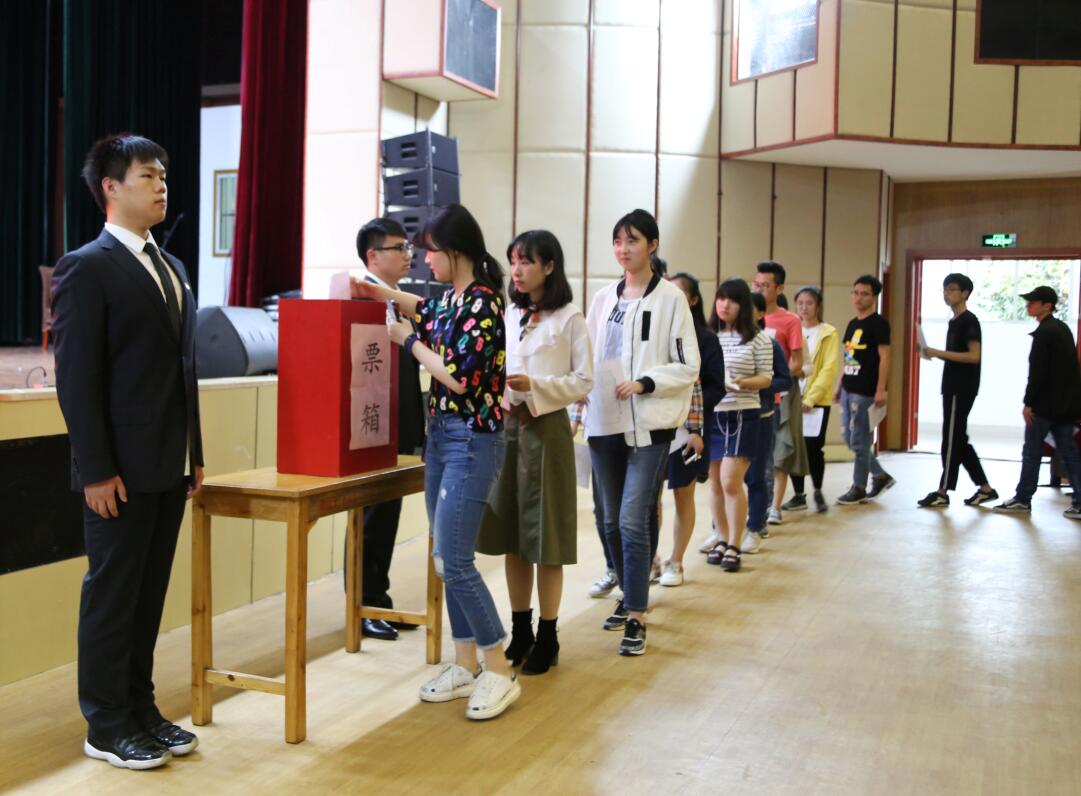 首先进行的是“青年五四标兵”(学生组)答辩,赵智慧、胡芯瑜等14名候选人从个人简介、科研成果、团学工作、获奖情况等多个方面进行了三分钟各具特色的汇报,接着是“五四红旗团委”答辩,大气物理学院团委、法政学院团委等12个候选团委作了2017年团委工作的精彩展示,最后现场评委进行投票并将选票投入票箱。