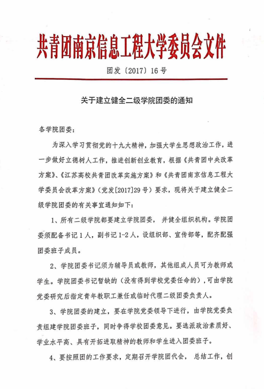 【通知公告】关于建立健全二级学院团委的通知