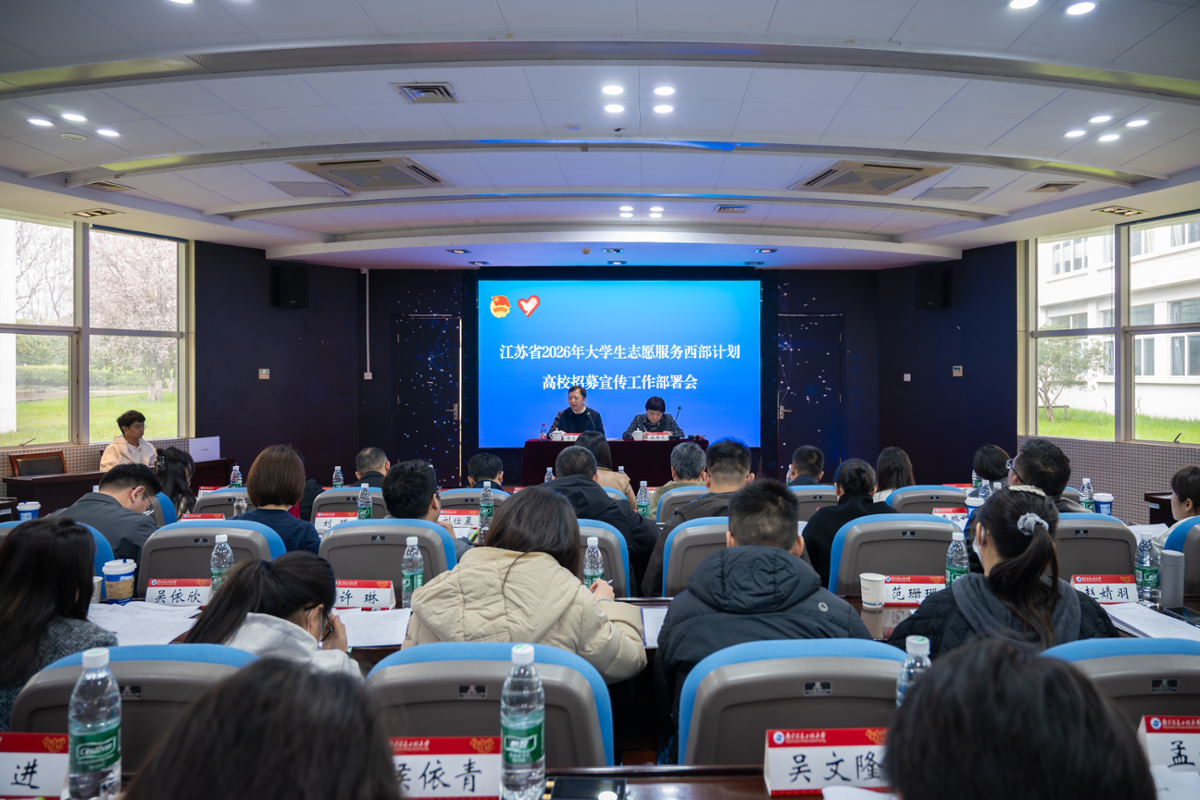 3月19日,团江苏省委、江苏省项目办在我校召开2026年大学生志愿服务西部计划高校招募宣传工作部署会。团省委二级巡视员施静芝、省项目办负责同志,相关高校团委负责同志等参加会议。